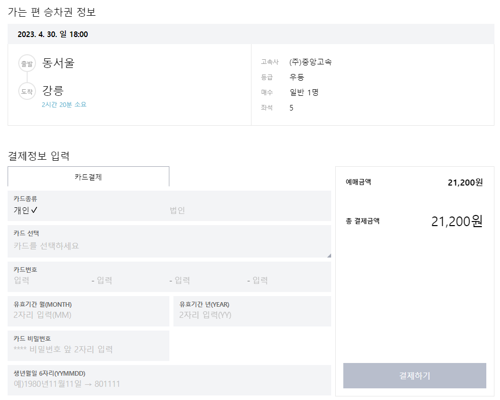 필요한 결제 정보를 입력하고 예매가 완료되면 역시 홈페이지를 통해 예매확인이나 취소가 가능합니다. 버스 탑승시에는 결제에 사용된 카드나 모바일티켓 홈티켓 중 하나를 반드시 지참하셔야 하니 참고하세요.